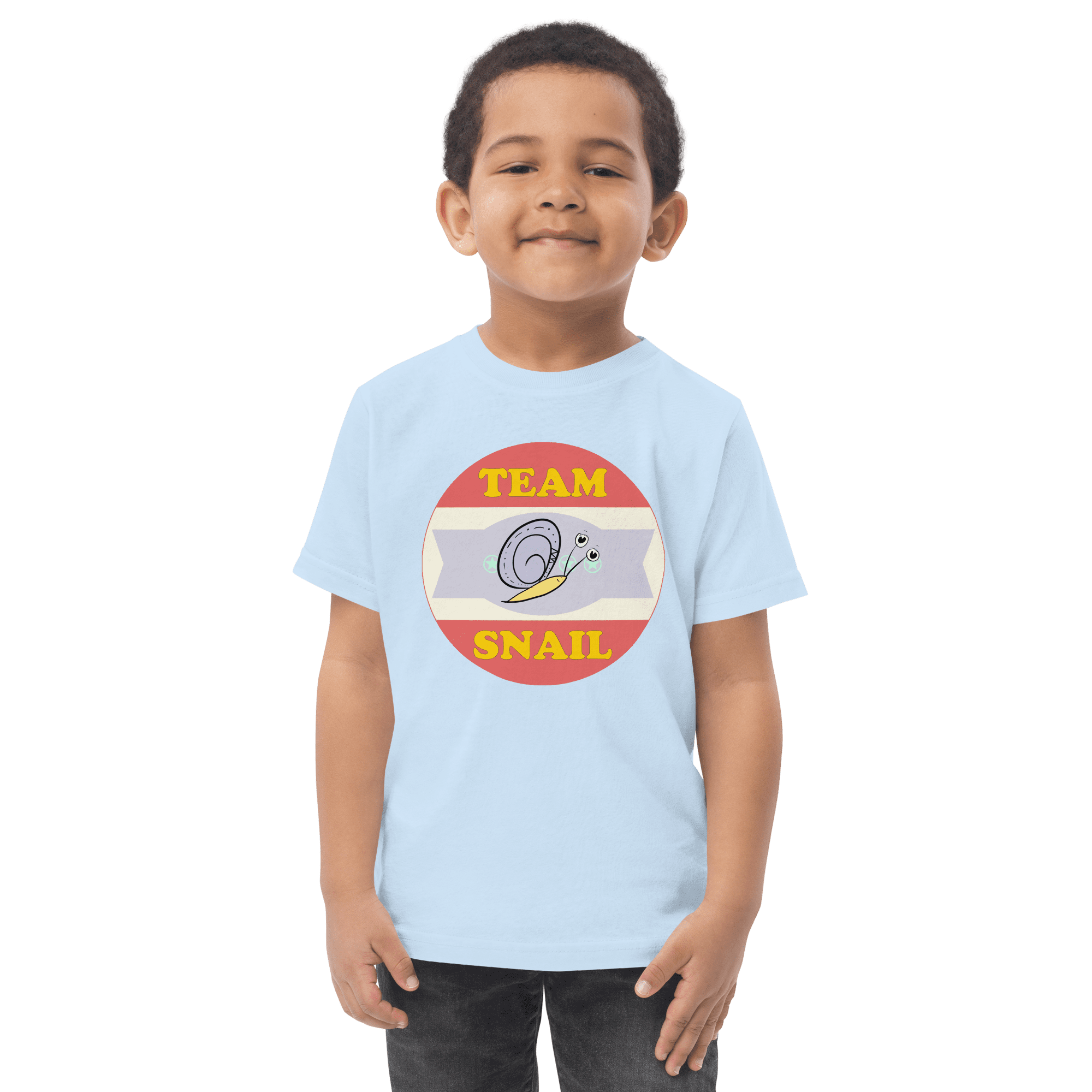 Whether worn alone or layered, this Team Snail jersey t-shirt is soft yet durable to withstand playtime demands. It’s the perfect combination of both comfort and style. The shirt has a ribbed collar, double-stitched sleeves, and self-fabric neck tape.